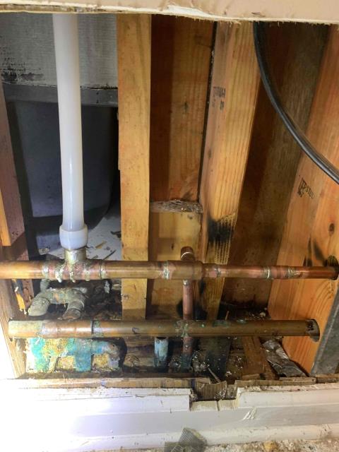 Replaced broken washing machine drain line and kitchen line under slab. Pipe is broken and stopped up, leaking water from under slab.